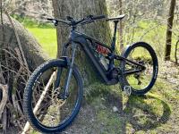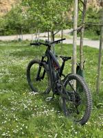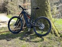 Ich fahre das "Cannondale Moterra Neo Carbon LT2" des Modelljahrs 2023 nun seit ziemlich genau einem Monat. Kaufgründe waren neben dem maximal zulässigen Systemgewicht von bis zu 150kg und der stimmigen Ausstattung, natürlich auch der Angebotspreis, zur UVP wäre die Wahl auf ein anderes eMTB gefallen. Gegenüber der Ausstattungsliste auf der Herstellerseite gab es ein paar Abweichungen. Bei mir ist die "SRAM Code R"-Bremse verbaut anstatt der "Magura MT5". Bei den Reifen sind es hinten "Maxxis DHR2" (wie beschrieben) und vorne "Maxxis DHF" anstatt des "Maxxis Assegai". Die Reifenwahl kommt mir sehr entgegen, da der "DHF" merklich besser rollt" als der "Assegai", bei den Bremsen sind meine Erfahrungen leider etwas durchwachsen. Die ersten Touren (gemischt, von Stadt über Waldautobahn bis hin zu softeren Trails) und kleineren Trail-Abfahrten sind vollbracht und das "LT2" konnte sich von seiner besten Seite zeigen. Für mein Fahrergewicht musste die ab Werk verbaute Feder gegen eine härtere Feder getauscht werden. Dazu kamen nur noch Trinkflasche und Klingel ... und natürlich ein paar Pedale (bei mir Flatpedals "Crankbrothers Stamp 2"), mehr Auf- oder Umrüstung brauchte es nicht bei diesem Modell, selbst die "Mudguards" sind in geschraubter und robuster Variante bereits montiert. Nach Anpassung von Gabel-Luftdruck, Reifenluftdruck, Sattel- und Sattelstützeneinstellung, sowie Prüfen aller Schraubverbindungen und Speichenspannung, konnte die erste kleine 40km-Tour starten. Nach den ersten (etwas ruppigeren) Kilometern, wurde schrittweise das Ansprechverhalten der Federgabel noch angepasst, bis es für meinen Fahrstil passte. Etwas problematisch waren für mich die Bremsen. Als "Shimano XT inkl. organischen Belägen"-Fan bei der Bremsanlage, war die "SRAM Code R" mit ihren Sinter-Metall-Belägen gewöhnungsbedürftig. Richtiges und ausgiebiges Einfahren der Bremsen war unabdingbar. Erst nach ca. 100km hatte ich das Gefühl, dass sich an Druckpunkt, Bremswirkung, etc. nichts mehr verändert. Die Bremsen beißen richtig zu, allerdings erst wenn sie warm sind, die Dosierbarkeit ist nicht optimal, dazu neigen sie durch die Beläge arg zu Nebengeräuschen, dafür bleibt die Bremskraft auch bei längeren Abfahrten sehr hoch. Für mich war es dennoch nicht das Richtige. Die originalen Sinter-Metall-Beläge wurden gegen organische Beläge getauscht (in meinem Fall "SwissStop RS"). Die negativen Eigenschaften des eMTBs sind das recht hohe Gewicht und das in Auslieferungszustand sehr exponiert platzierte "Kiox 300"-Display. Als neutral würde ich den Sattel bewerten. Er ist recht hart und schmal, nicht unbequem und durchaus mehr als brauchbar, aber so richtig warm werde ich damit doch nicht. Ansonsten habe ich auf den ersten Touren/Abfahrten und den damit abgerollten paarhundert Kilometern nichts negatives feststellen können. Die Geometrie passt für mich sehr gut, man sitzt zentral, auch auf langen Touren sehr angenehm und man hat immer genug Druck aufs Vorderrad, damit es auch bei steilen Uphills auf dem Boden bleibt. Der Grip des 27,5" Hinterrads ist auch in unwegsamen und matschigen Geländer enorm, während das 29" Vorderrad auch bei schnellen Abfahrten präzise die Spur hält und Hindernisse gut überrollt. Bergab liegt es sehr satt und sicher und lässt sich auch auf ruppigem Untergrund kaum aus der Ruhe bringen. Das Fahrwerk passt sehr gut zum Rad und Gabel und Dämpfer harmonieren, es bügelt vieles einfach glatt und verliert so schnell nicht die Haftung und verlässt auch erst spät die Spur. Auf Touren-Strecken ist es sehr bequem und lässt sich auch effizient und bei Bedarf sehr zügig pedalieren. Man hat nie das Gefühl, dass man mit dem schweren und langhubigen Enduro fehl am Platz ist bei einer Radtour, man hats manchmal etwas schwerer als die Mitfahrer mit tourenorientierten Rädern, aber auch als Allrounder schlägt sich das "LT2" überdurchschnittlich gut. Selbst lange Anstiege lassen sich gut pedalieren und mit Umlegen des Lockhebels des Dämpfers dann auch fast ohne Wippen des Hinterbaus und mit nur minimalem Tretkraftverlust. Wer allerdings aufgrund des Mullet-Setups auf ein etwas verspielteres, agiles und wendiges eMTB hofft, wird enttäuscht sein, das "LT2" kann einstecken und austeilen im Gelände, aber nicht leichtfüßig von Wurzel zu Wurzel tänzeln. Wer also bei jedem kleinen Absatz abheben will oder ohne Umsetzen um engste Kurven zirkeln, ist mit einem anderen eMTB sicherlich besser aufgehoben. Für alle die ein tadellos verarbeitetes und stimmiges (Konzept und Ausstattung) Allzweck-Werkzeug für Stadt, Tour und raues Gelände suchen, denen Fahrsicherheit und Laufruhe wichtiger sind als Agilität und Verspieltheit, für die ist das Modell sicherlich eine Überlegung wert. Die Ausstattung ist sehr stimmig, ich konnte keine Komponente finden, die qualitativ hinter anderen merklich abfällt. Egal ob die griffigen verbauten Schraubgriffe, die robusten Laufräder oder die tadellos funktionierende und für mich ausreichend lange Vario-Sattelstütze (170mm Hub bei Rahmengrösse L), alles ist zu meiner absoluten Zufriedenheit. Alles ist auf ordentlichem bis gutem Niveau, die sehr steife 38er "ZEB Select"-Gabel ist ein Segen für schwere Fahrer und hartes Gelände (auch wenn die Einstellmöglichkeiten gegenüber Ultimate oder mancher "FOX"-Factory-Gabel reduzierter sind) und harmoniert super mit dem "Deluxe Select +"-Coil-Dämpfer. Über das E-Antriebssystem, egal ob der bärenstarke "Bosch Performanceline CX" (85nm) mit dem SMART-System, die (etwas klobige) Remote-Bedieneinheit, das scharfe und schöne "Kiox 300"-Display oder der ausdauernde 750Wh-Akku, muss man nicht viele Worte verlieren. Hier passt, ebenfalls bis auf das Gewicht von Motor und Akku, letztendlich alles. Auch bei den steilsten Anstiegen immer ausreichend Kraft, gute Reichweite (auch wenn es nicht direkt vergleichbar ist, bisher je nach Höhenmetern und Unterstützungsstufen mindestens 60km gekommen ... be